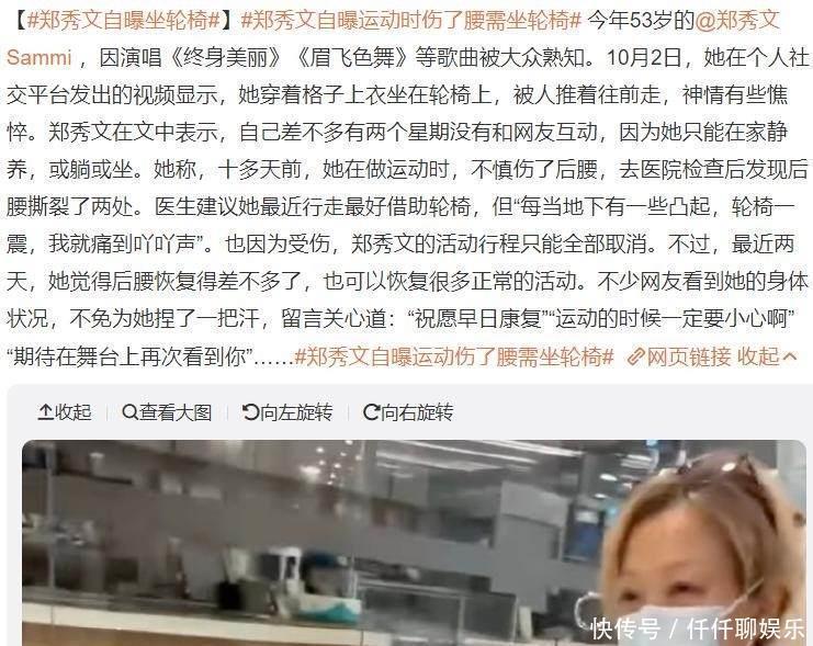 2024年秋天,郑秀文的腰突然就撑不住了,一次平常的运动,把两节腰椎给撕裂了,她没发长文诉苦,也没上热搜喊疼,只在社交平台贴了几张照片,一只猫趴在窗台上,一碗冒着热气的云吞面,还有她坐在轮椅上拍的跑步机视频,大家记得她是那个连开十三场演唱会,五十三岁还能跳到满头大汗的人,可她的身体,早就不听使唤了,她不是在硬撑,她只是不想倒下。